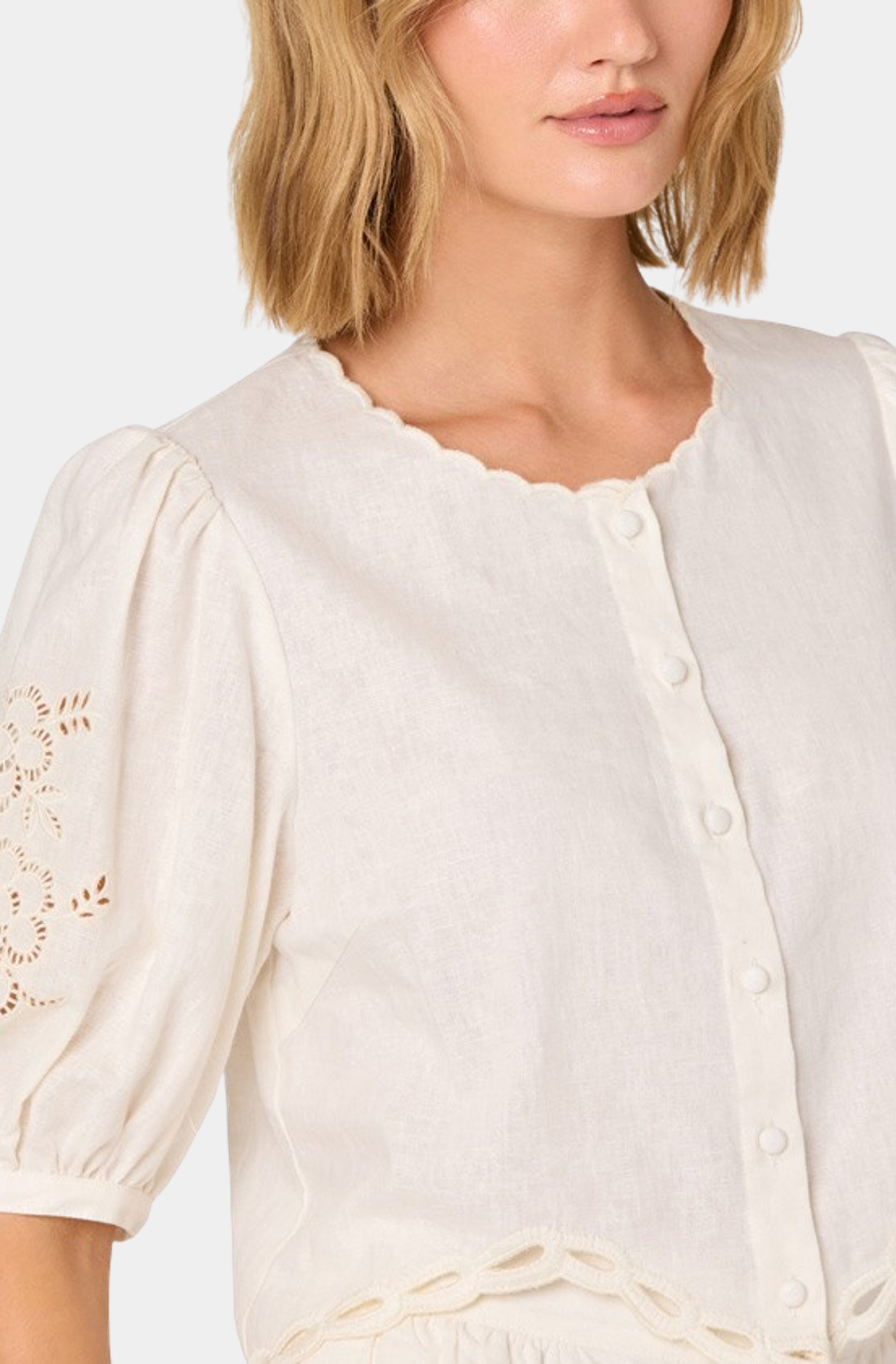 Farm Rio Malu Winter White Cutout Long Sleeve Maxi Dress