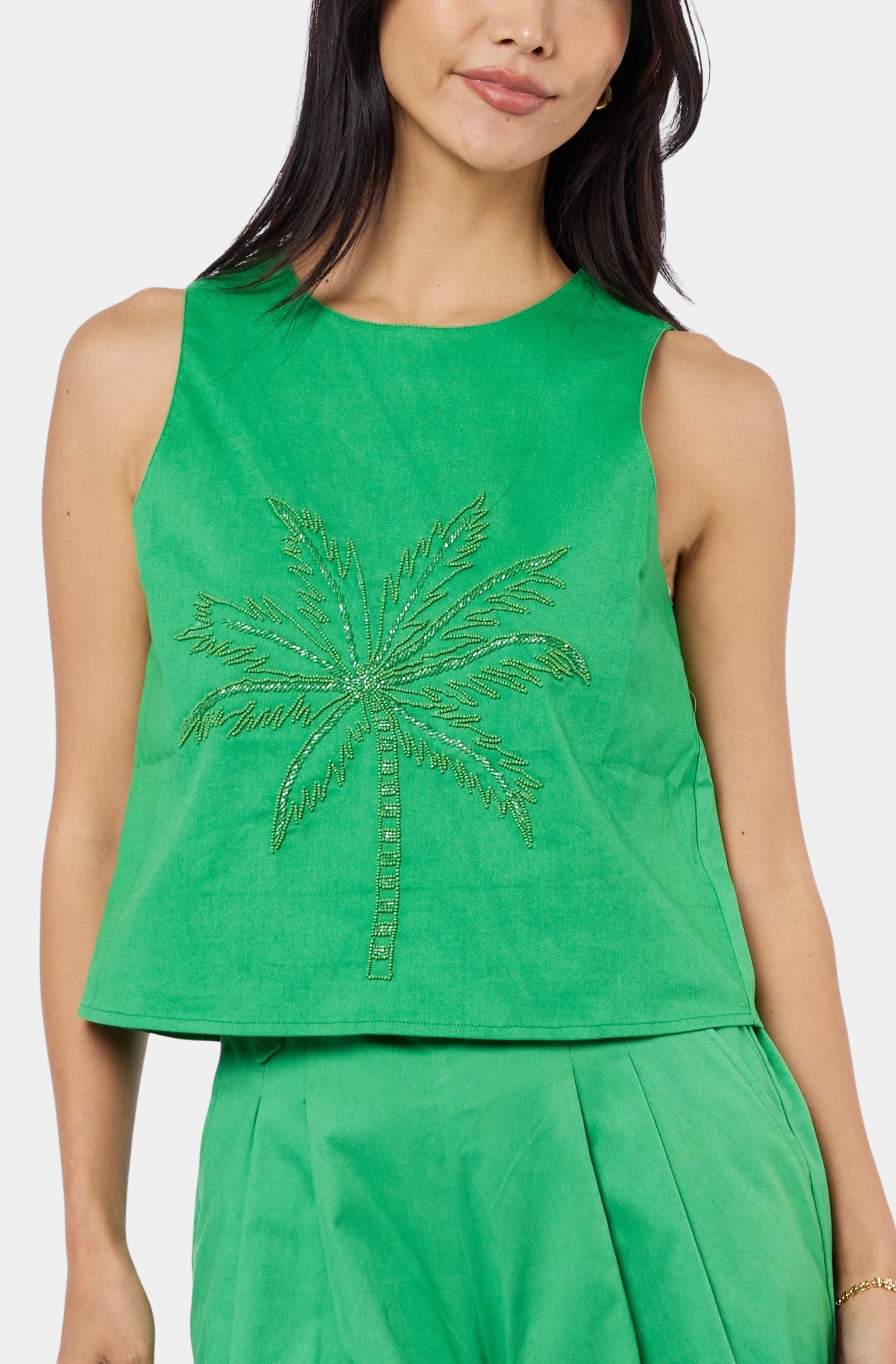 Berit Embroidered Palm Tree Top