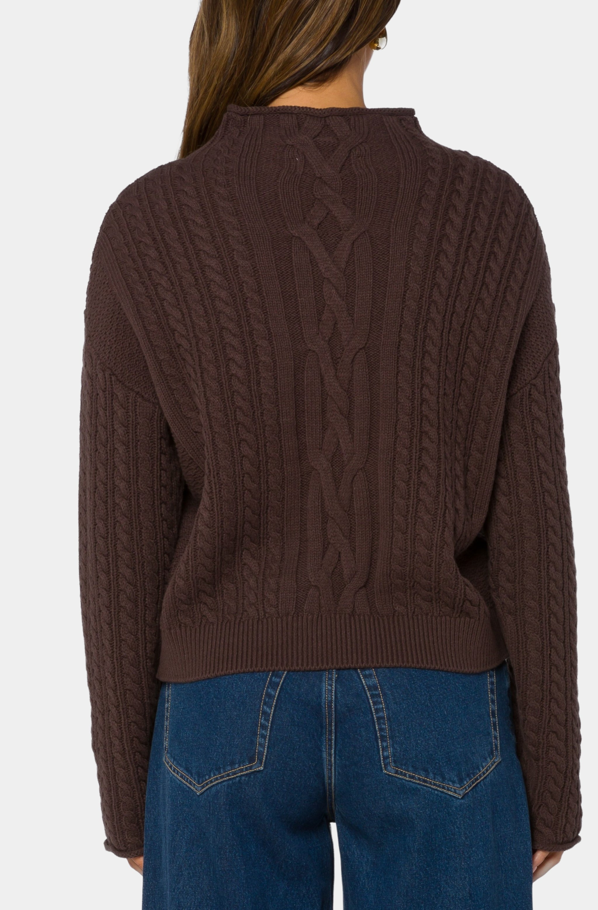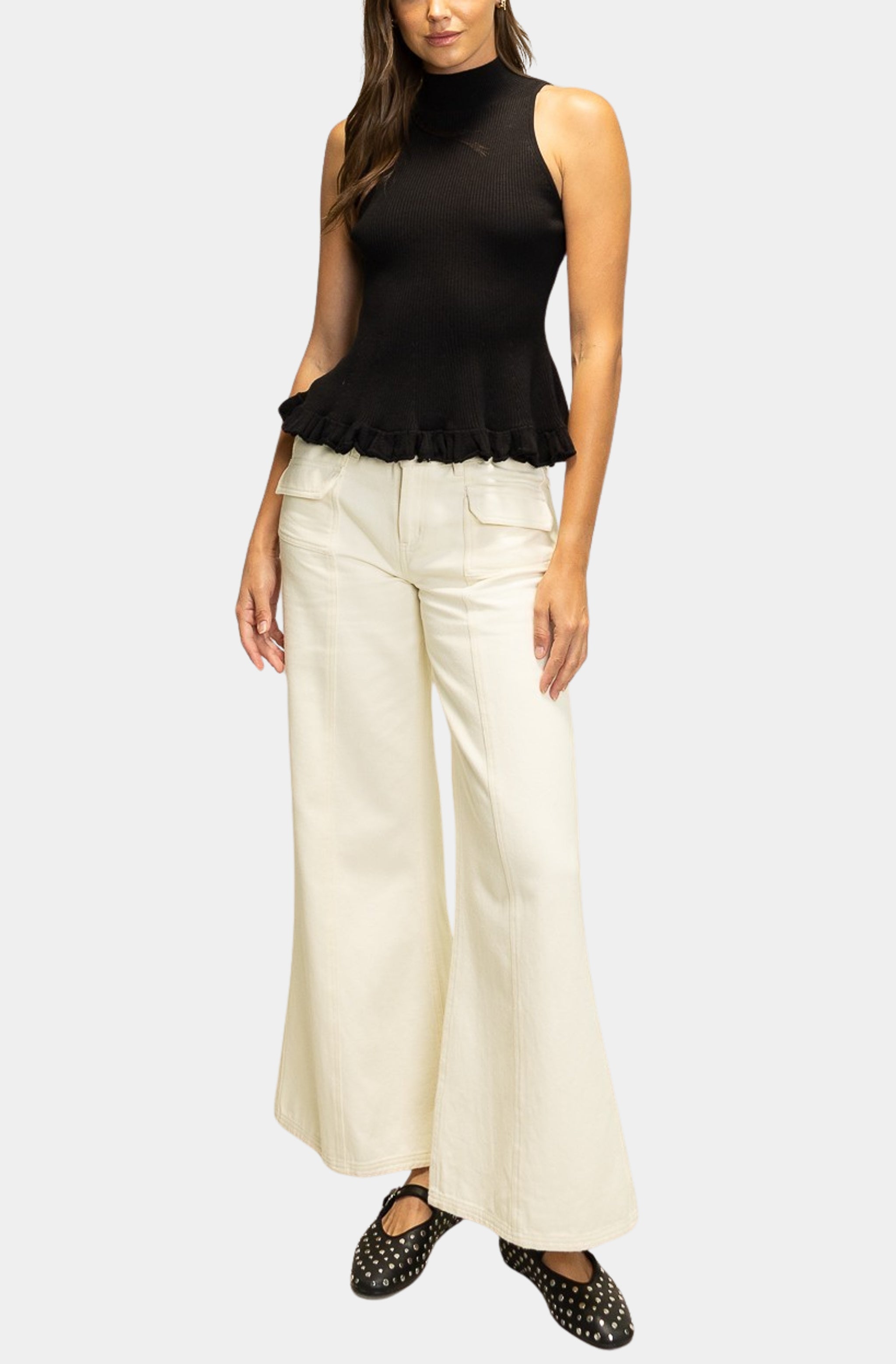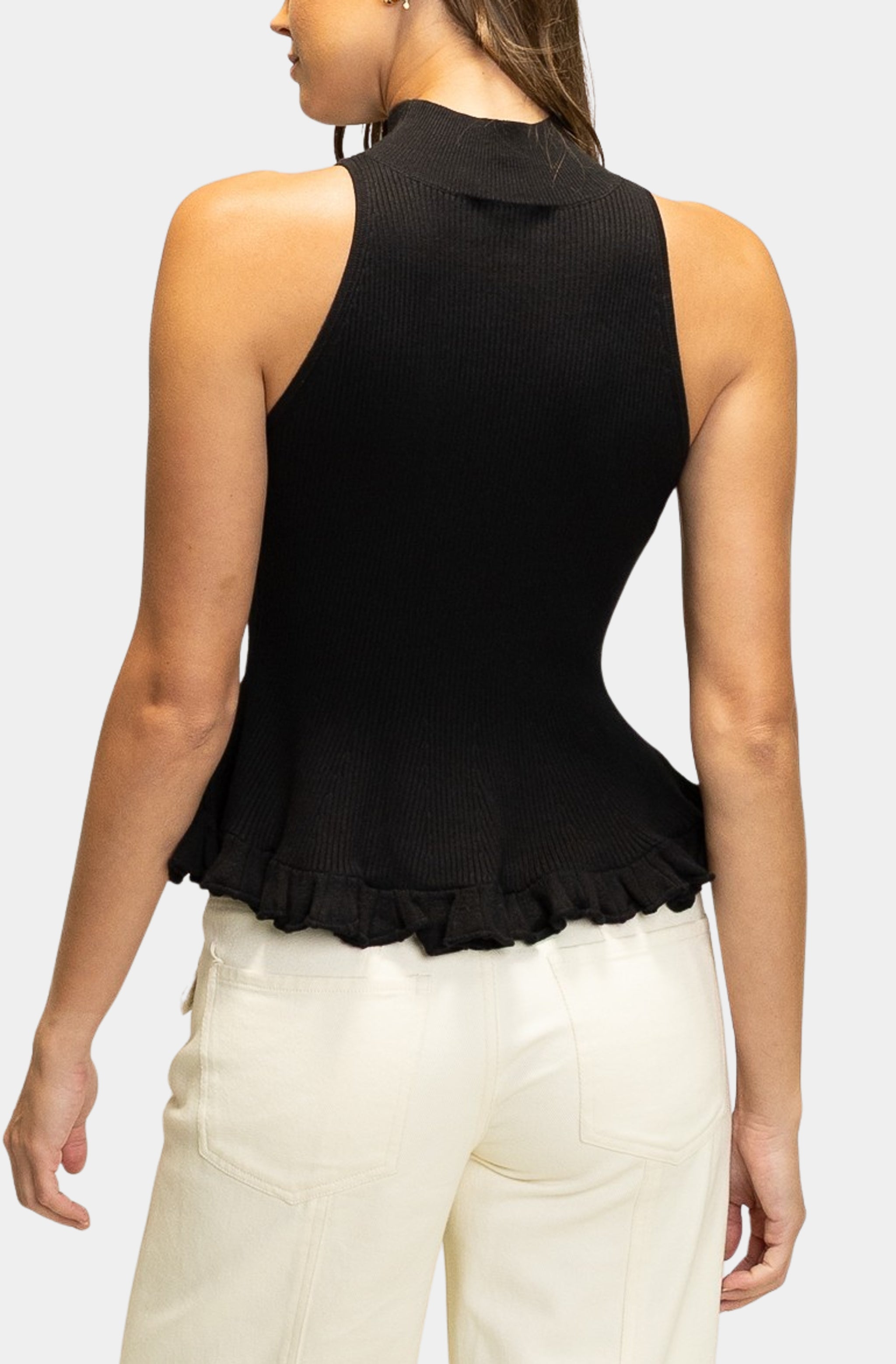 Ruffled Hem Mock Neck Knit Top