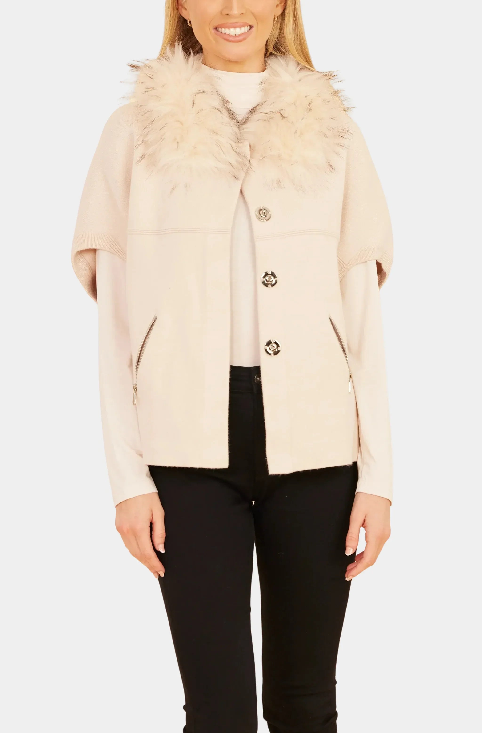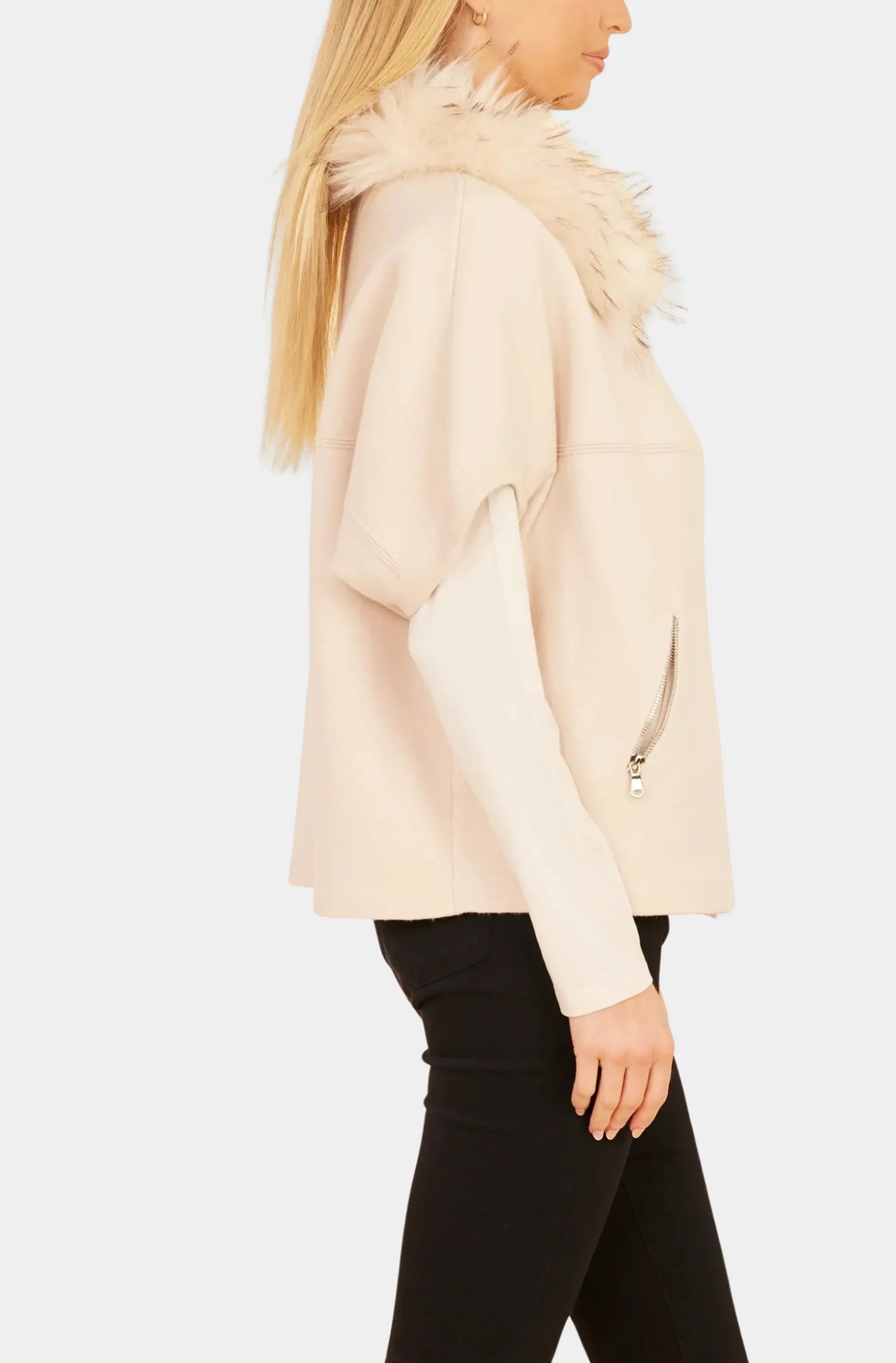 Cream Faux Fur Cape With Pearl Detail