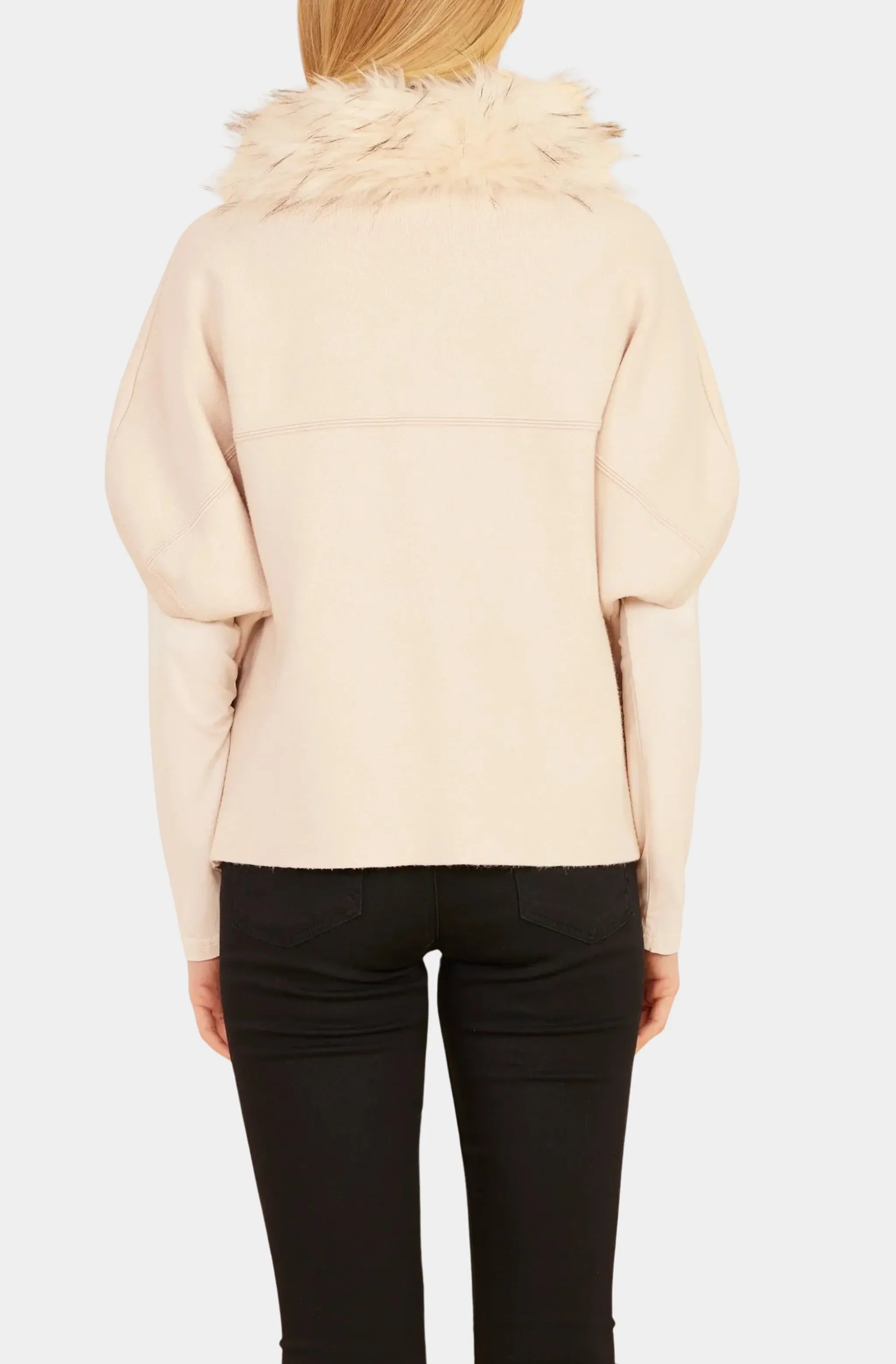 Faux Fur Cable Knit Design Jacket