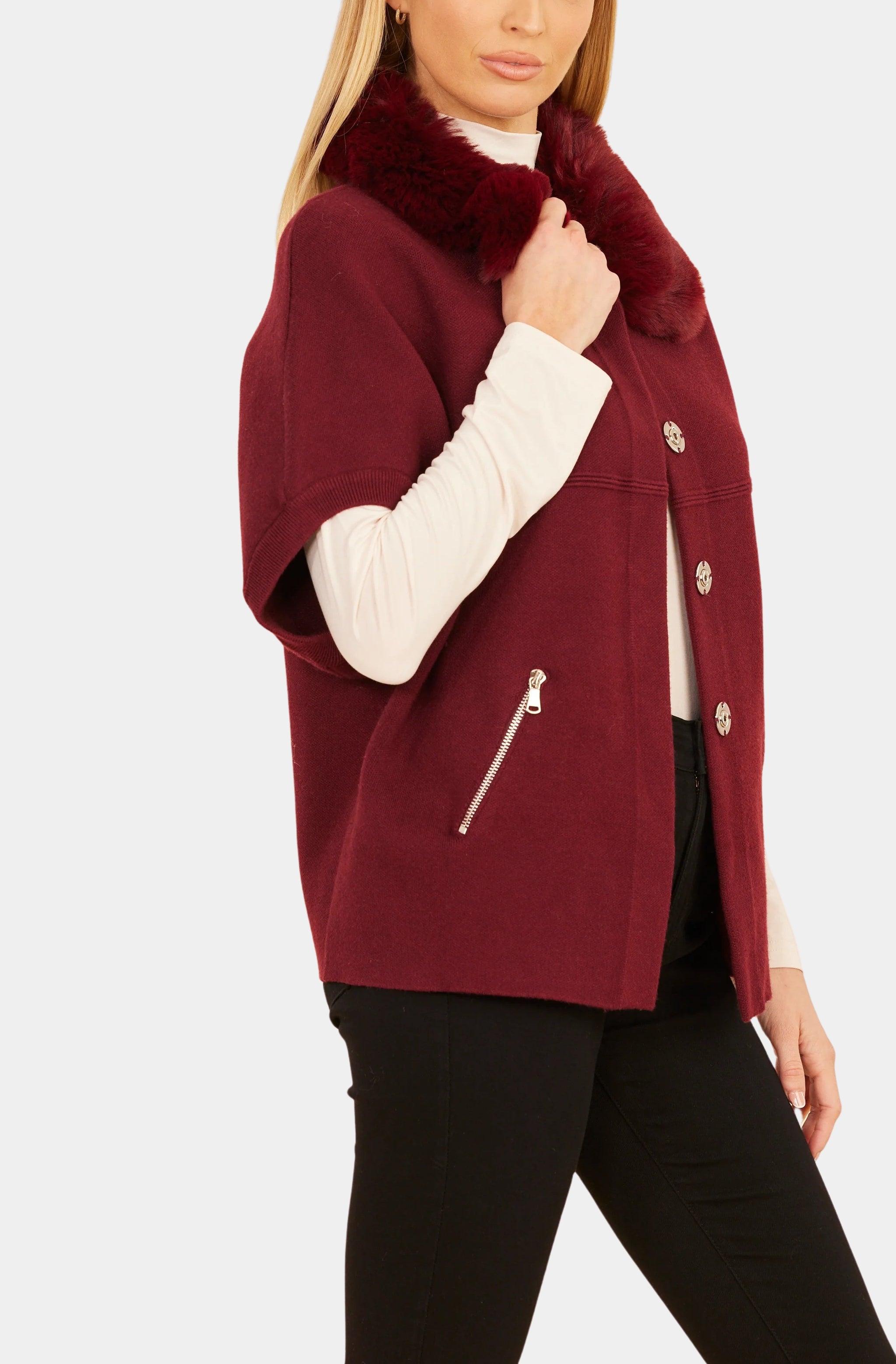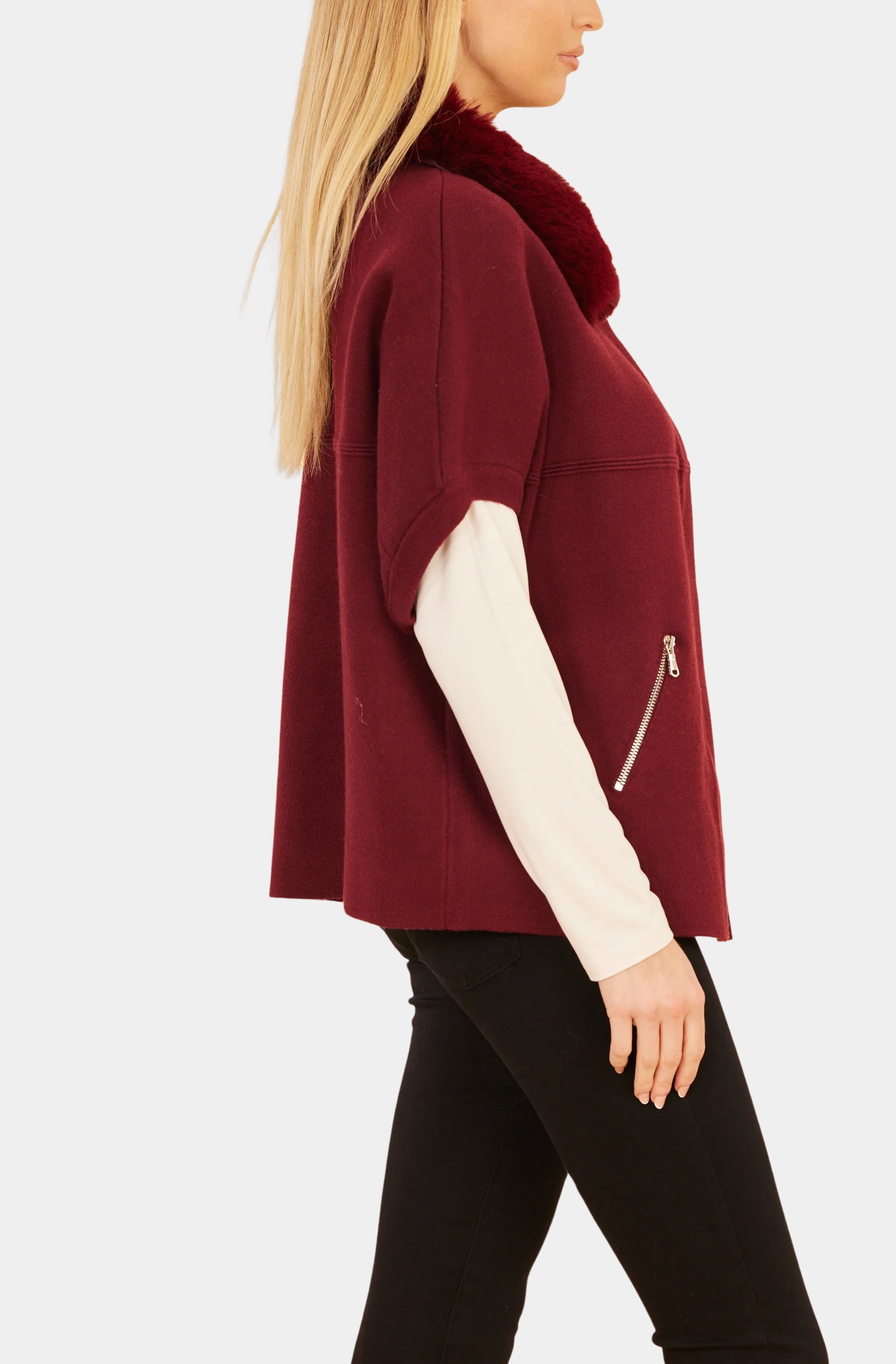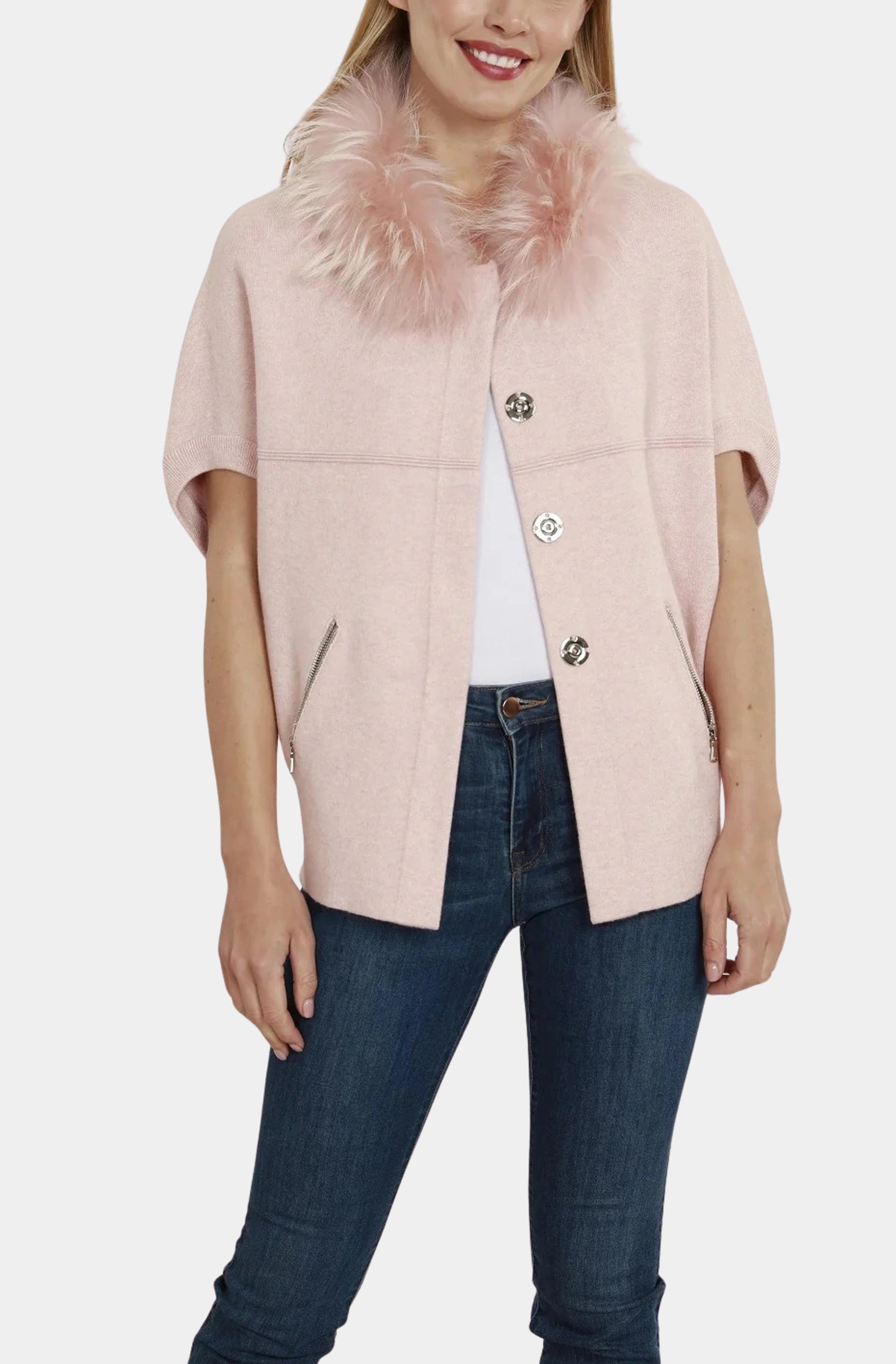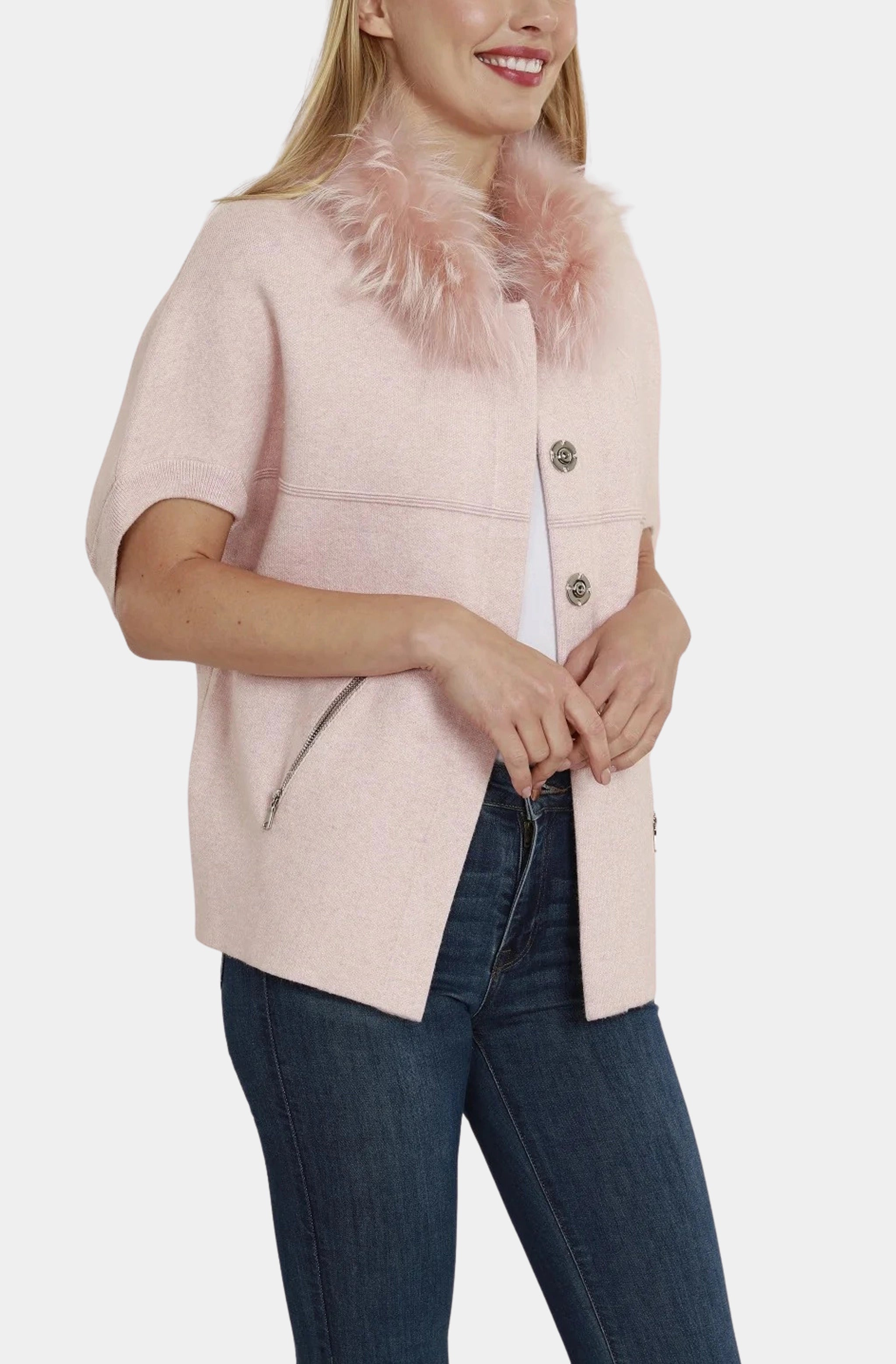 Dolce Cabo Faux Fur Collar Short Sleeved Cardigan