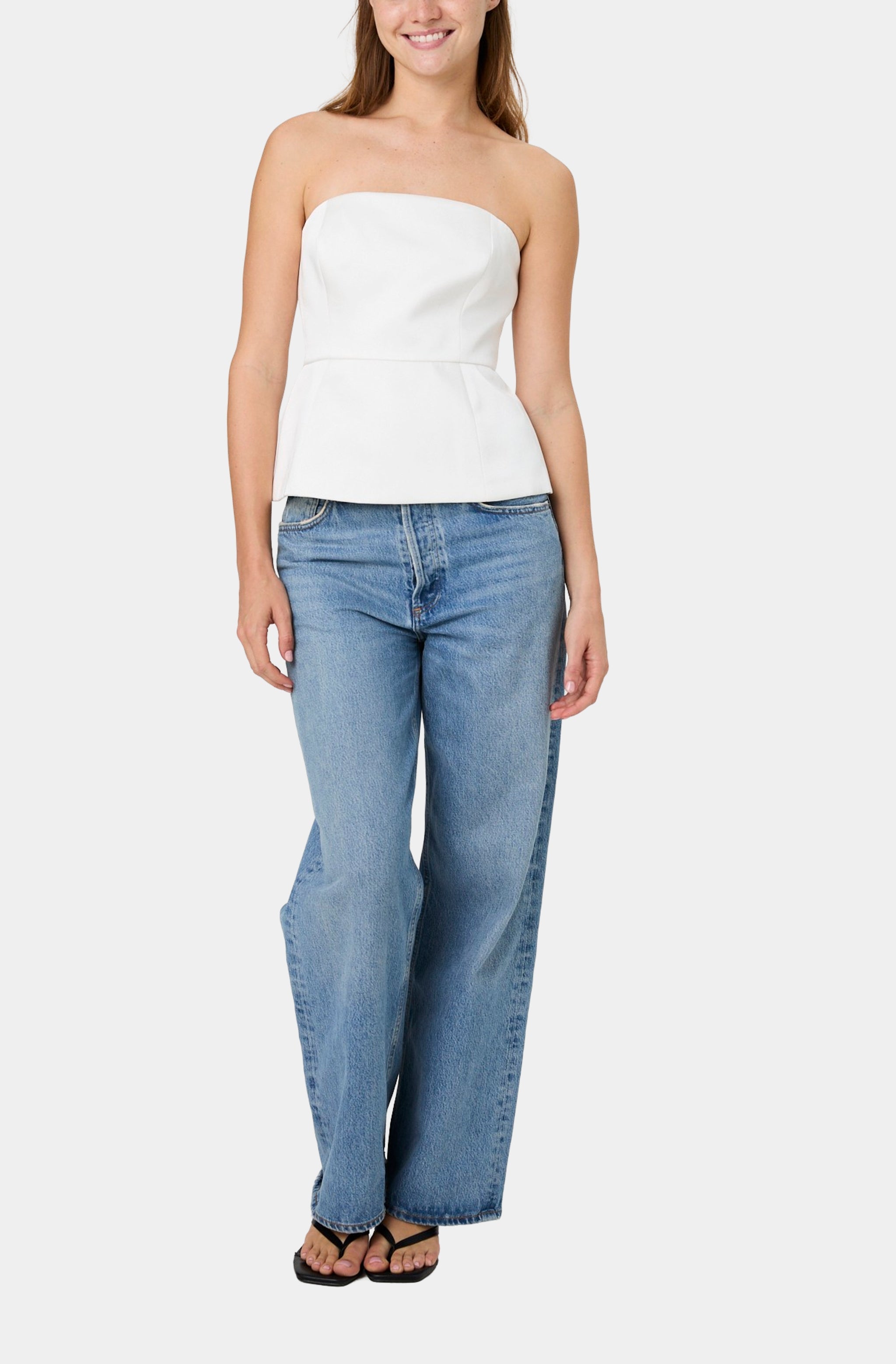 York Satin Strapless Peplum Top