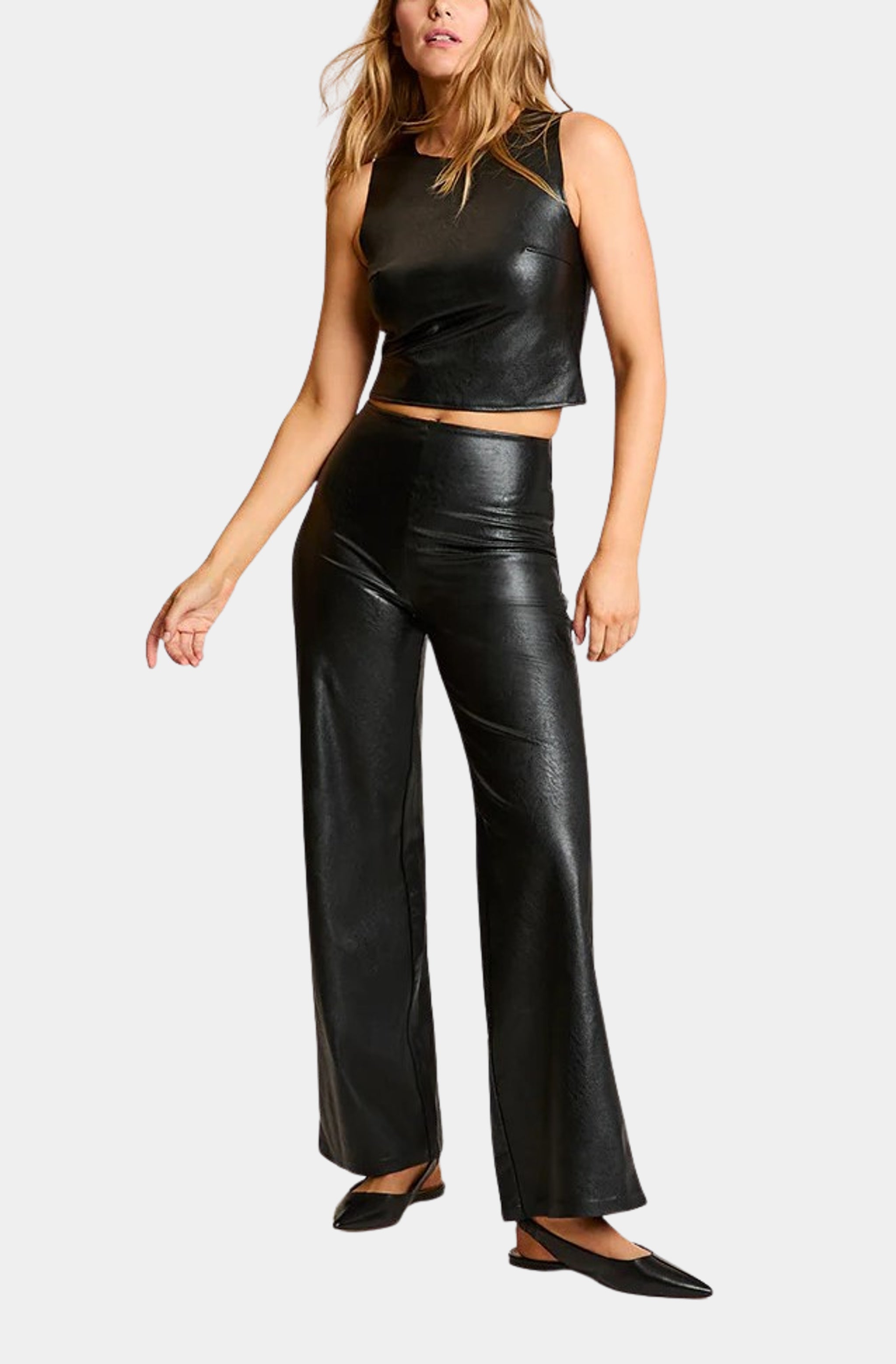 Faux Leather Wide Leg Pant